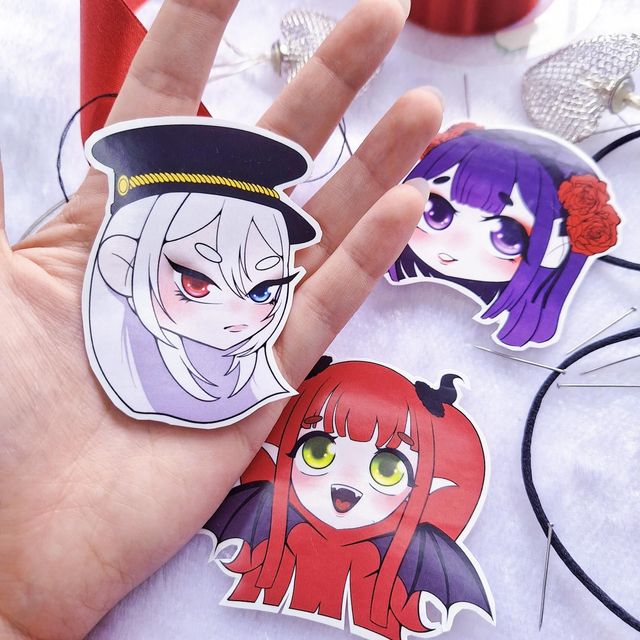 Pegatinas impresas en papel mate con ilustraciones de los primeros cosplays de Marin Kitagawa, la protagonista de Sono Bisque Doll Wa Koi o suru: Black Lobelia.