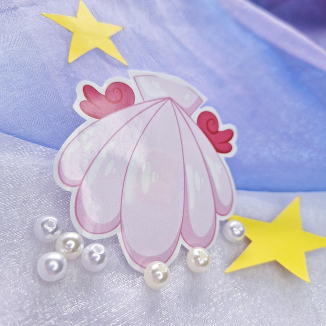 Pegatina impresa en papel mate con la ilustración de la concha del collar de Luchia, una de las 7 perlas originales del anime Pichi Pichi Pitch.