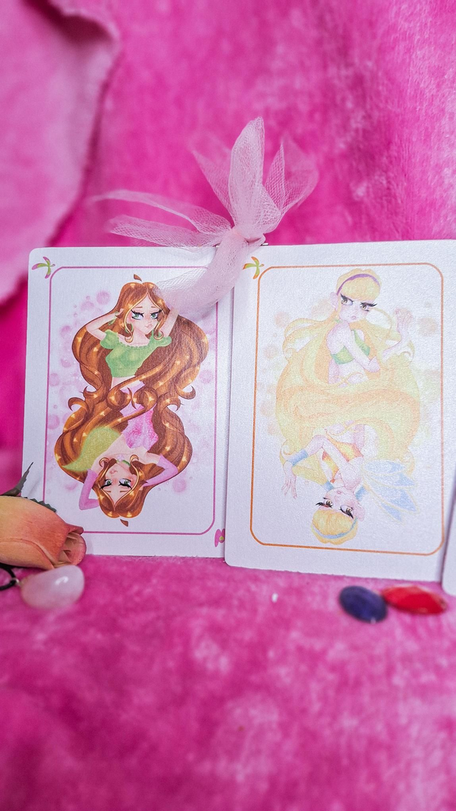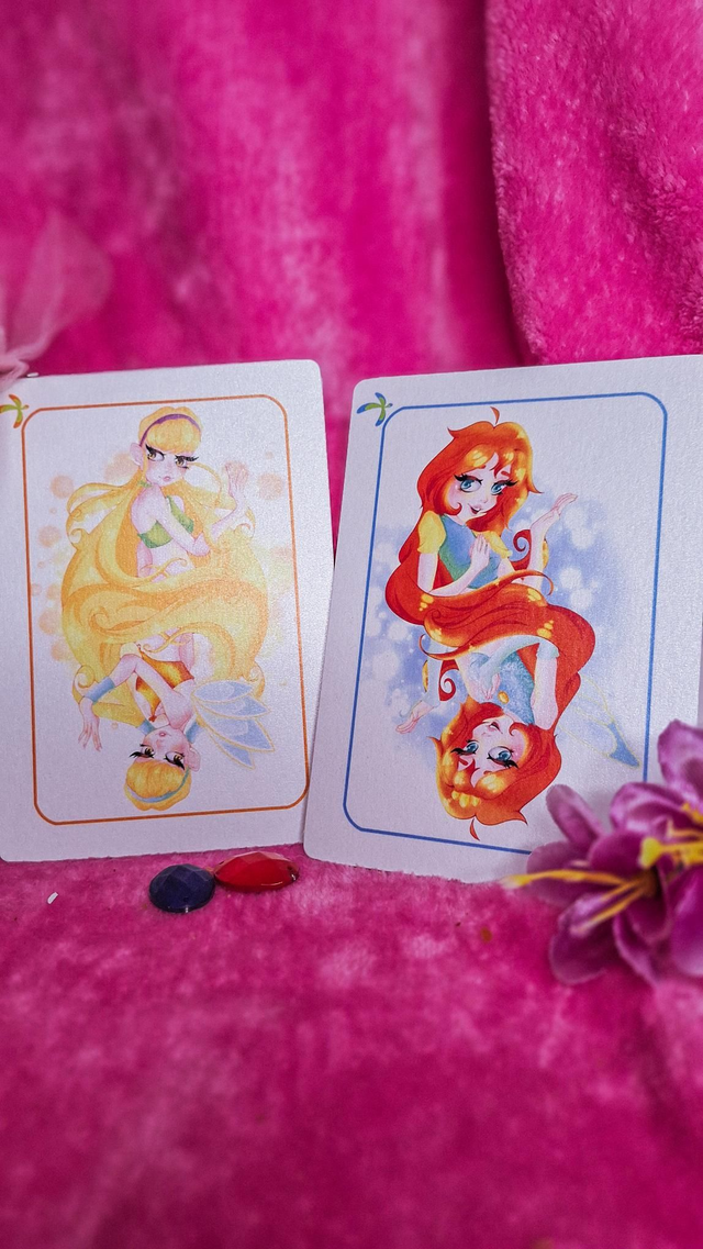 ¿Qué pasará si las hadas de Winx Club se combinaran con la carta de reina de corazones? Esta print tamaño A6 es la combinación de estos 2 conceptos. Una de las mitades se corresponde con la transformación en hada y la otra con su versión humana. Hay tres modelos: Bloom, Stella y Flora